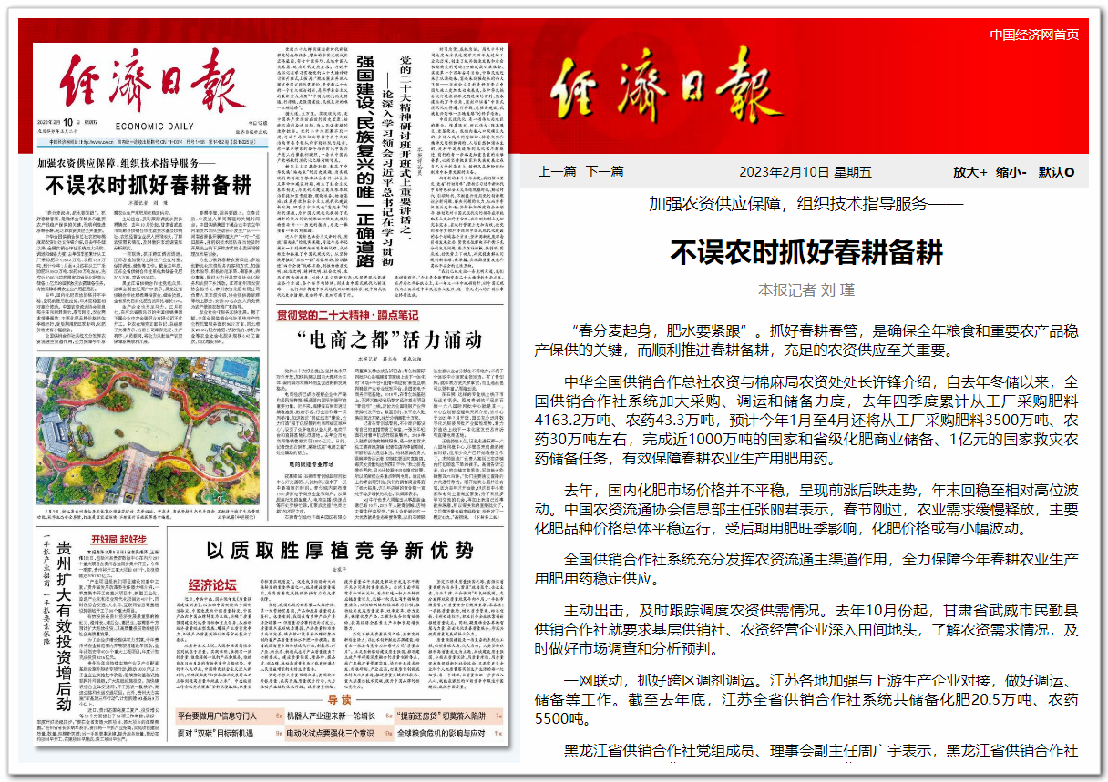 全國(guó)供銷(xiāo)合作社系統(tǒng)充分發(fā)揮農(nóng)資流通主渠道作用,全力保障今年春耕農(nóng)業(yè)生產(chǎn)用肥用藥穩(wěn)定供應(yīng)。