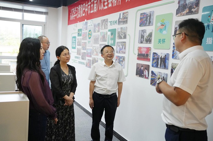 杜冬梅一行到市供銷投資集團參觀了“巴適GO”云倉、電商平臺運營中心,實地考察巴中電商物流和“巴食巴適”品牌建設運營情況。