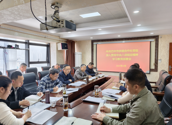 會議傳達學(xué)習(xí)了市委黨的建設(shè)領(lǐng)導(dǎo)小組(市委市政府黨風(fēng)廉政建設(shè)責(zé)任制領(lǐng)導(dǎo)小組)會議暨全市黨建引領(lǐng)基層治理協(xié)調(diào)機制2025年第一次全體會議精神,組織學(xué)習(xí)了《省供銷社貫徹落實中央八項規(guī)定精神和省委、省政府規(guī)定的實施辦法》《巴中市深入貫徹中央八項規(guī)定精神學(xué)習(xí)教育有關(guān)問題答復(fù)(一)》等文件精神,審議通過了市供銷社《深入貫徹中央八項規(guī)定精神學(xué)習(xí)教育的實施方案》。